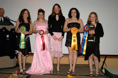 ASH Banquet:  At the Alaska State Horse Shows, Inc. (ASH) formal Banquet held on Friday evening, January 7th, 2005 at the Anchorage Downtown Marriott in Alaska, awards were given for these seasons achievements in equestrian excellence.  Alicia Hall (Pink Dress)and My Shiny Penny were presented with awards for high points, Pony Performance, Short Stirrup Hunter and Beginning Jumper as well as place in the top three in Equitation and Gymkana.  Awards included a monogrammed horse blanket, ribbons & Halters.